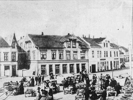 Dette bilde viser vestsiden av Torget med noe av torghandelen omkring 1. verdenskrig.