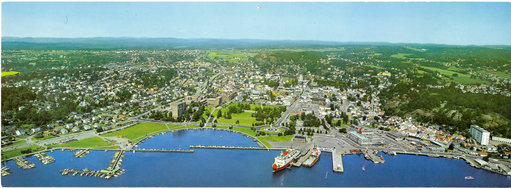 Aune Kunstforlag P-11362-4 Sandefjord, utsikt over sjøfartsbyen med Indre Havn