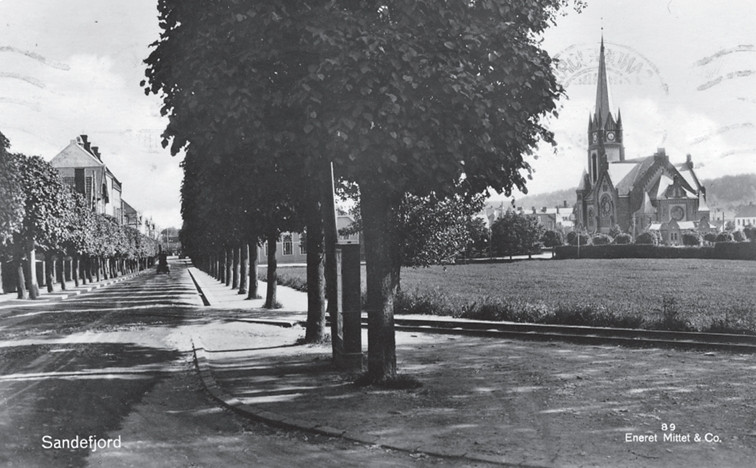 På jordet til høyre bygde tyskerne brakker under annen verdenskrig. Senere er tomten benyttet til Bussentralen og boligkomplekset Jernbanealleen 36.